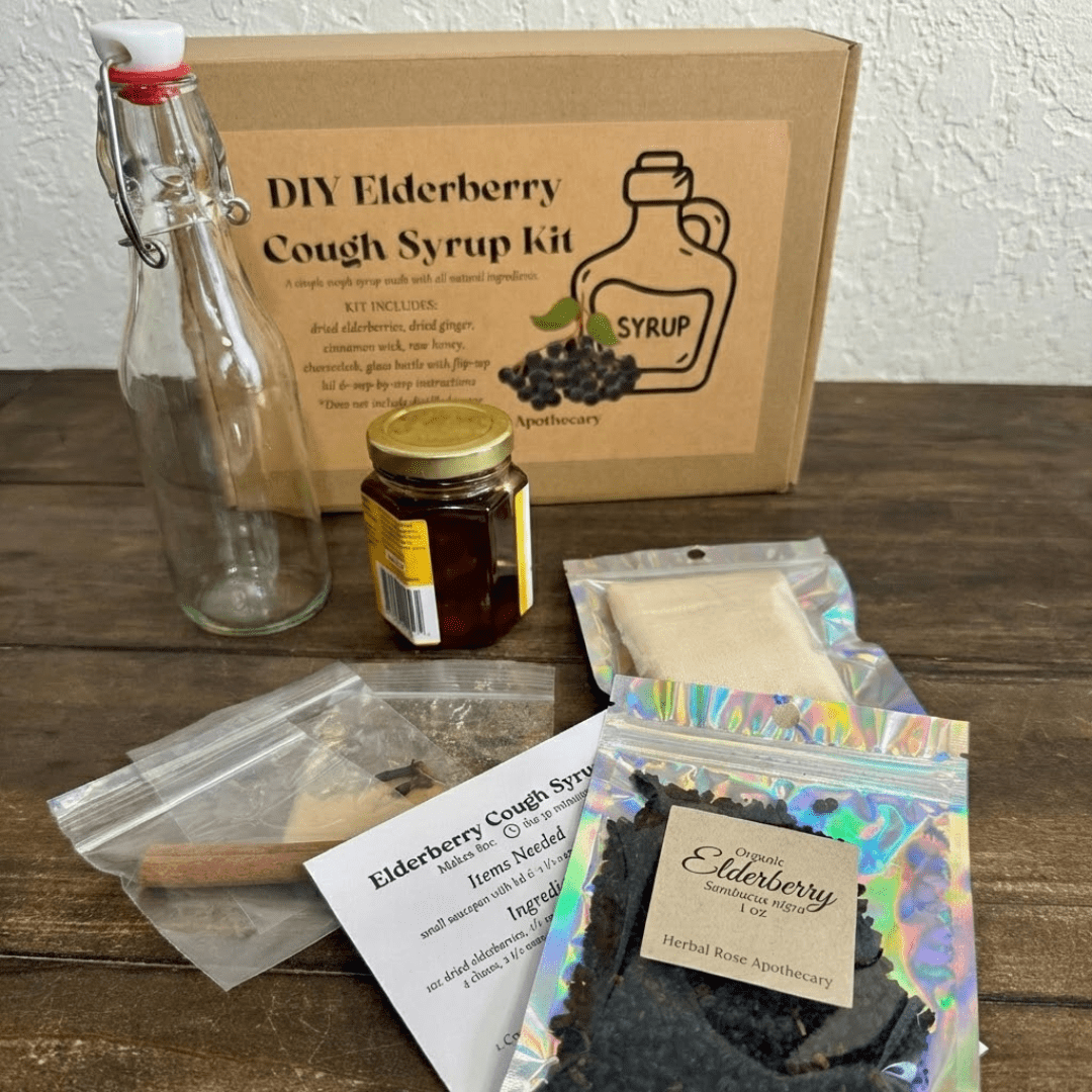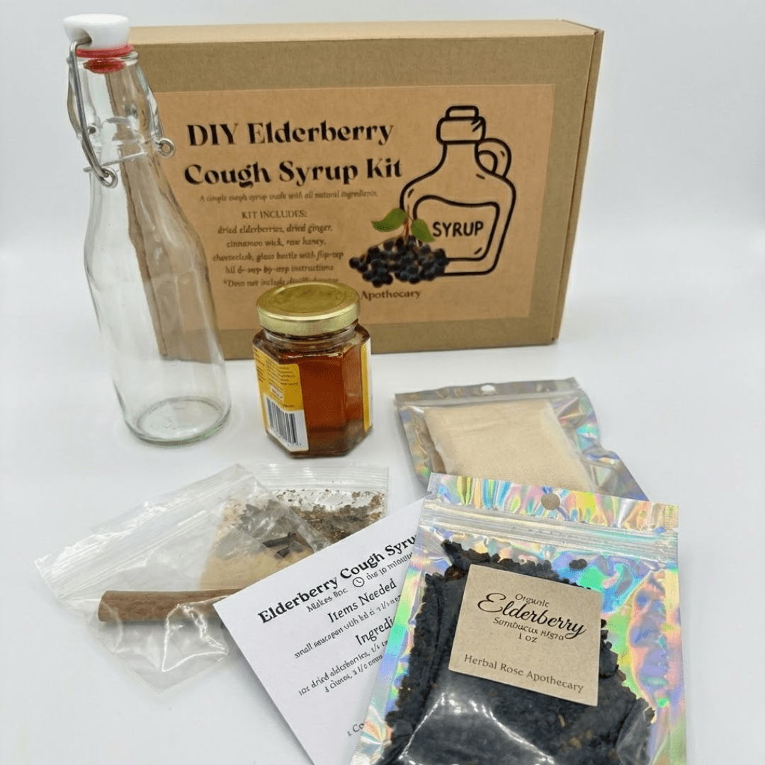 Create your own elderberry cough syrup at home using all-natural ingredients. This easy, beginner-friendly kit is perfect for cold and flu season and makes a thoughtful, practical gift for family and friends.