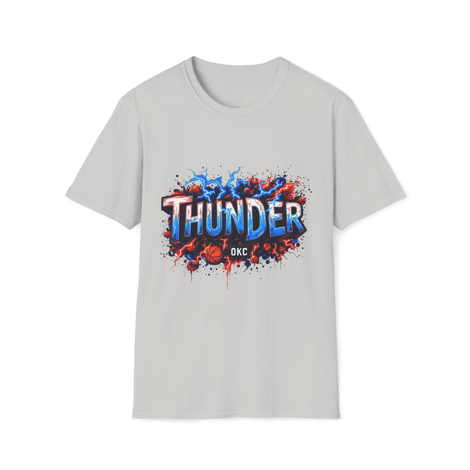 Stand out with this high-voltage Thunder-inspired design. With striking colors and layered basketball elements, this shirt delivers a strong, modern look for true fans. Comfortable fit for all-day wear.