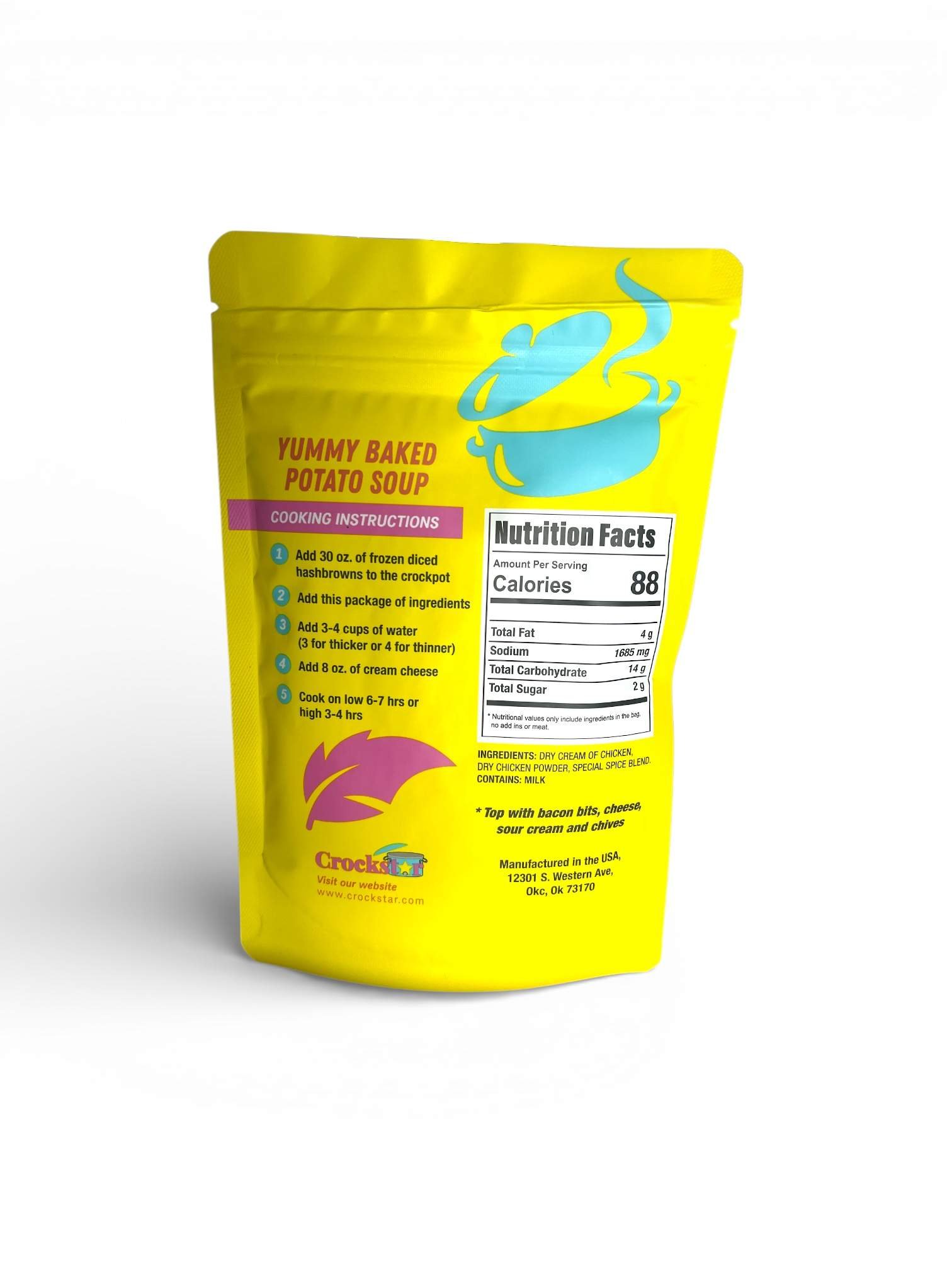 A creamy, hearty potato soup mix that’s easy to make in the slow cooker. Just add hashbrowns, cream cheese, and water for a warm, comforting meal that serves 6–8.